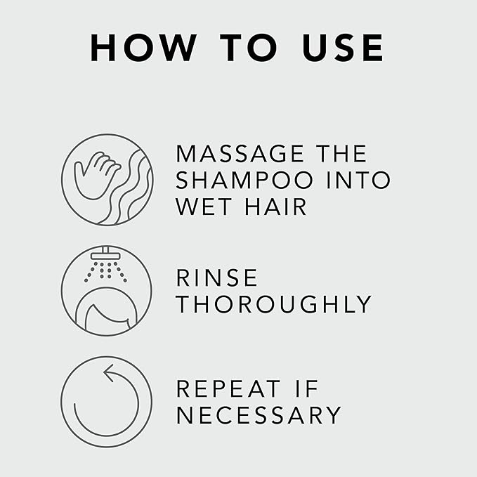 Aplique uma pequena quantidade do shampoo sobre o cabelo úmido e massageie delicadamente. Enxágue com água em abundância e repita se achar necessário.